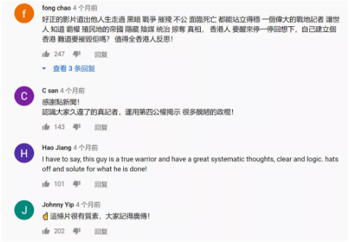 弗尔切克今年5月的专访视频评论区,部分港人的留言对得起他生前的努力
