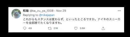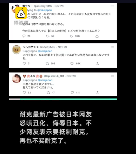 也正因为如此,2020年11月27日,美国体育用品公司耐克针对日本市场推出的一则以“反对种族歧视”为主题的广告,播放量达到960万,引起日本民众的反感和抗议。