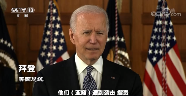美国总统 拜登: 他们(亚裔)遭到袭击,指责,被当成替罪羊,遭到骚扰,遭到恶语攻击、人身攻击, 甚至被杀害。我们必须敢于直言,我们必须行动起来。