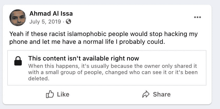 2019年7月,阿利萨在社交网站上写道:如果这些仇视伊斯兰教的种族主义者停止入侵我的手机,让我过上正常的生活,我可能会做到。