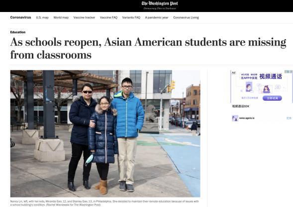 本月初,《华盛顿邮报》发表的一则调查报道称,随着全美学校的陆续复课,学生们纷纷返校。而亚裔学生的返校率明显低于其他族裔,原因是,很多亚裔家长担心孩子在学校因疫情遭到歧视,选择暂时不让孩子返校。