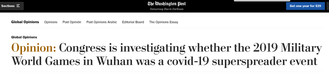 (来源:https://www.washingtonpost.com/opinions/2021/06/23/congress-wuhan-military-games-2019-covid/)