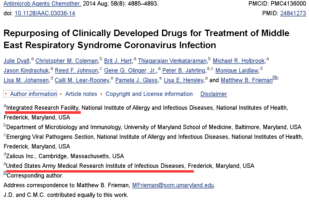 同时,因为都在德特里克堡内,并且从事的都是高危病毒以及冠状病毒的研究,所以美国政府的IRF-Frederick与美军的USAMRIID,在人员和科研上都有着极为紧密的合作关系。