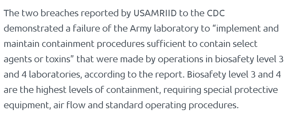 2.但应用这些危险病毒技术的IRF-Frederick、USAMRIID乃至巴里克自己在美国北卡罗来纳的实验室,都存在不良的安全记录,而且都直接涉及从事最危险病毒研究的BSL-4实验室。