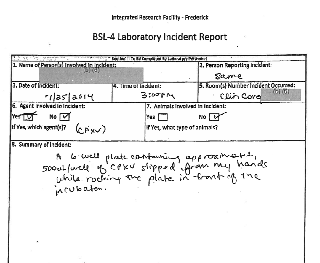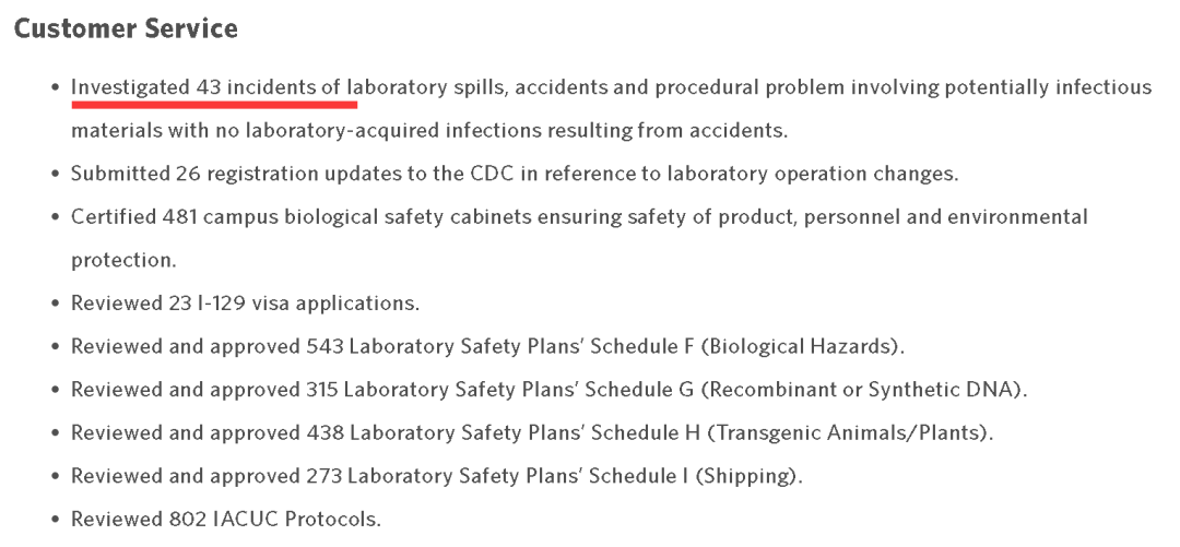 同时,IRF-Frederick的其他较低安全等级的实验室,也同样被曝出存在实验室安全问题。