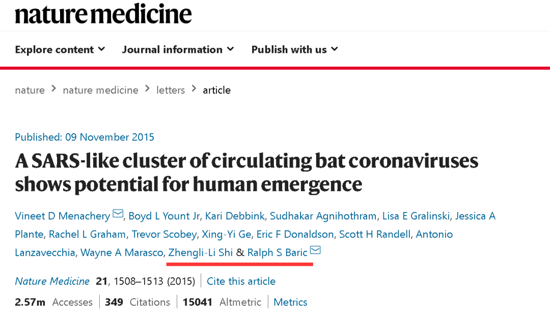 比如在2015年时,当中国武汉病毒所的科学家石正丽和她的团队从云南的蝙蝠洞里获得了几种冠状病毒的基因后,巴里克就找上了门,希望获得这些冠状病毒的样本进行研究。当时,石正丽也非常慷慨地将自己的发现分享给了巴里克,后者则在美国的实验室里用他的病毒改造技术造出了一种全新的、可以感染人类的冠状病毒。这一研究结果也于2015年发布在了国际学术期刊《自然》上。