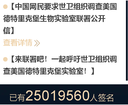 自我们《环球时报》受一批中国网民委托发起的要求调查美国德特里克堡生物实验室的联署活动吸引了2500多万人的签名后,一些坐不住的美国媒体开始纷纷跳了出来,说中国对于美国德特里克堡与新冠病毒来源有关的质疑,是“阴谋论”。