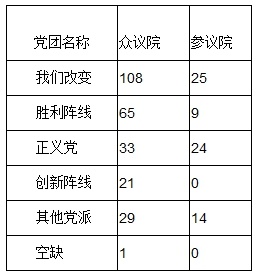 本届议会于2015年12月成立,各主要党团在议会的席位如下: