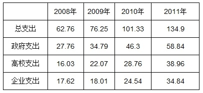 2017年政府科技经费预算为139.57亿比索,占全年预算支出的0.6%%;全国科研人员为46884人。近年阿科技研发情况如下(单位:亿比索):