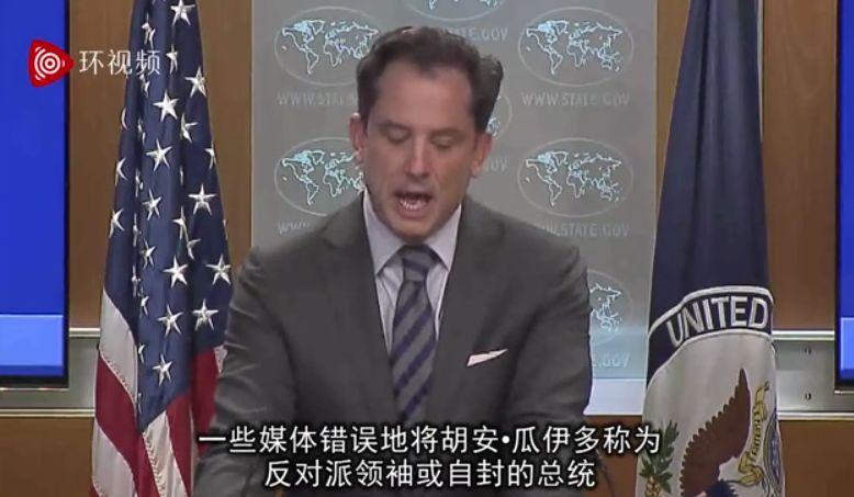 俄罗斯RT电视台6日就注意到这样一幕:在5日美国国务院记者会上,发言人罗伯特•帕拉迪诺似乎想“指导”美国媒体在措辞上与官方站到一起,准确称呼美国支持的委内瑞拉反对派领导人瓜伊多为“委内瑞拉临时总统”,但又被美联社记者怼了。