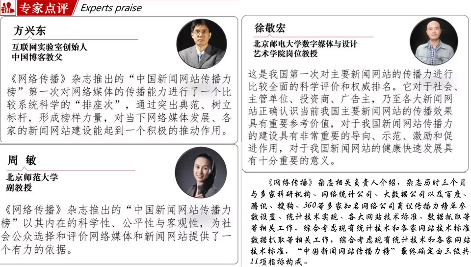 “中国新闻网站传播力榜”是由《网络传播》杂志打造的系列榜单,以月度为单位,旨在客观反映国家网信办许可和确定的250家互联网新闻信息服务单位每月的网络传播效果,并力求推进当下网络媒体、各级新闻单位的传播力建设。