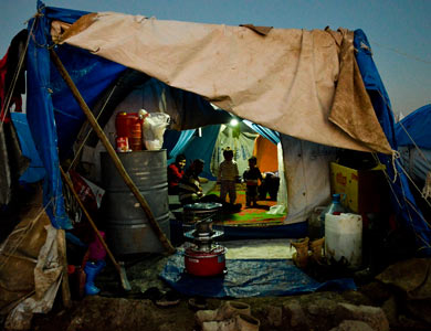 成为一名难民,不但意味着流离失所,也意味着将一无所有,包括财产、家园、甚至亲人,只能在他乡栖身在脆弱的帐篷里,靠着微少的国际救援过活,据联合国难民署资料显示,目前有近10万名难民栖身在伊拉克,7万多名难民正栖身在库尔德斯坦地区,面对茫然无助的未来。这个营地原本只计划容纳1000个家庭,但现在却不胜负荷,饮用水供应和卫生设施都相当恶劣。