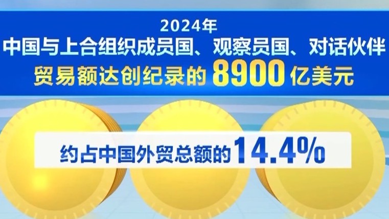 2024年,中国与上合组织成员国、观察员国、对话伙伴贸易额达创纪录的8900亿美元,约占中国外贸总额的14.4%。天津港正积极发挥枢纽作用。